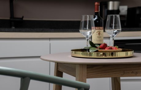 This trendy, modern, spacious studio apartment is situated on the first floor. It features gorgeous skylights and gets the most enchanting afternoon sun. Open up the automated roof windows with block out screens to make the most of the Stellenbosch sun! Every care has been taken to furnish this apartment with state of the art modern conveniences and amenities. A chic breakfast nook for two perfectly rounds out the space.